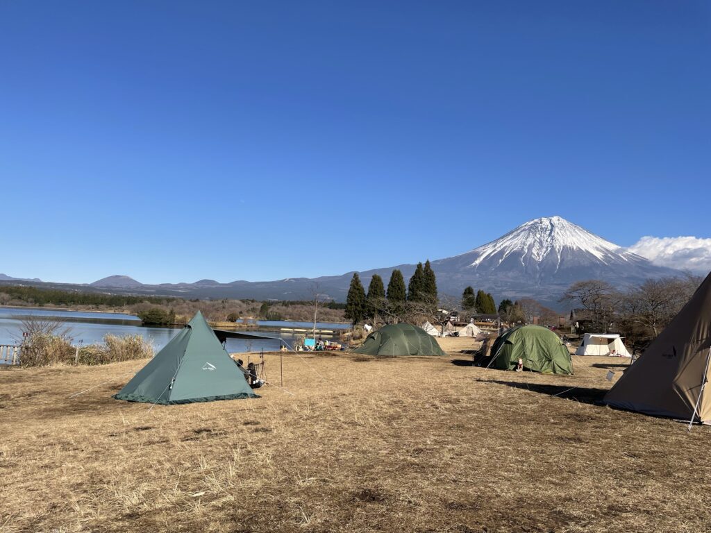 キャンプだけでなく、ハイキング、サイクリング、釣りなど、週末には観光地としても賑わう場所です。特に富士山が湖越しに見えることから、絶景を求める人々にとって非常に魅力的なスポットとなっています。